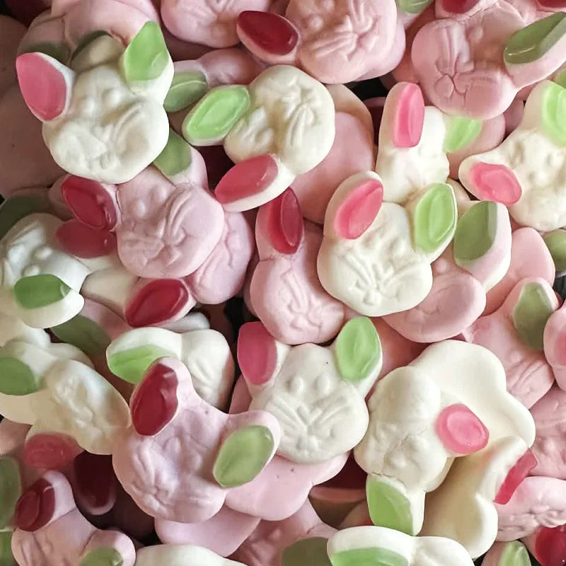 These adorable rabbit-shaped gummies are as tasty as they are eye-catching. Each piece features two unique flavors in one bite—the green ears bring a sweet and juicy strawberry flavor, while the red ears deliver a rich and slightly tangy cassis (blackcurrant) taste. The combination creates a perfectly balanced candy experience that keeps you coming back for more.