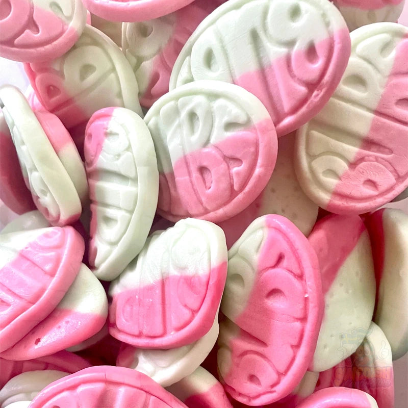 Indulge in the refreshing and fruity goodness of Bubs Watermelon Ovals! These soft, chewy candies are packed with the delightful taste of sweet watermelon, making them the perfect treat for candy lovers. With their unique oval shape and vibrant pink and green colors, they not only taste amazing but also look visually appealing. Whether you're enjoying them on your own or sharing with friends, Bubs Watermelon Ovals offer a burst of summer flavor in every bite. Treat yourself to this irresistible Swedish candy and experience the ultimate fruity sensation! Perfect for any occasion or as a special snack to satisfy your sweet cravings.