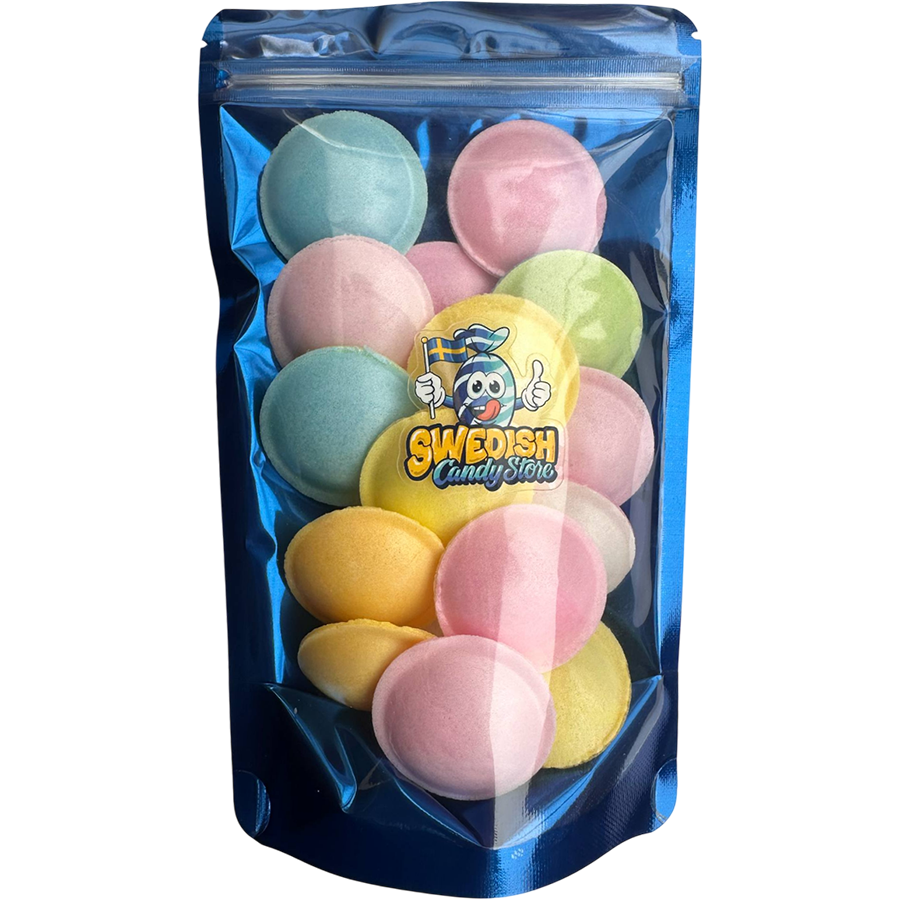 Take a sweet trip down memory lane with Flying Saucers – a beloved Swedish candy that brings childhood nostalgia in every bite. These colorful, melt-in-your-mouth discs are made from delicate rice paper and filled with a tangy sherbet powder that fizzes and pops on your tongue.